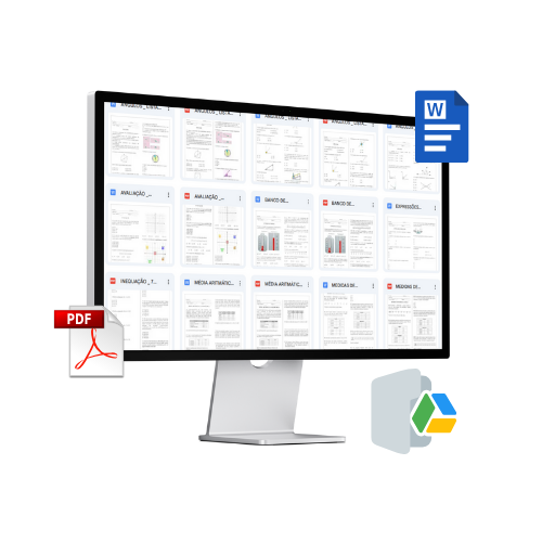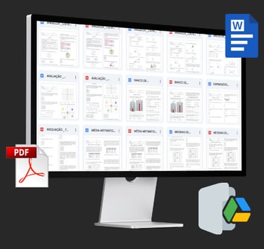 Você receberá um link de acesso a um Drive, onde todo o material do banco de atividades fica organizado e disponível em um só lugar. Isso facilita o acesso rápido aos arquivos, permite baixar quando quiser e garante atualizações contínuas.